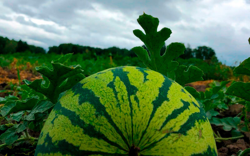 Арбуз – теплолюбивая культура, поэтому успех ее выращивания в регионах с умеренным климатом зависит от соблюдения рекомендаций, направленных на получение раннего урожая. Культуру можно выращивать как через рассаду, так и прямым посевом семян в грунт. Вегетационный период длится от 65-75 суток у скороспелых сортов (Огонек, Сибирские огни, Сахарный малыш, Ультраскороспелый) до 90-100 суток у среднеспелых (Холодок, Фотон, Подарок Северу, Кримсон Свит). Возраст рассады арбуза 30-35 суток, в связи с этим посев семян на рассаду для последующей высадки ее в открытый грунт – 25-30 апреля, в теплицу – 10-15 апреля. Непосредственно в открытый грунт семена сеют 25-28 мая. Очень часто растения, выросшие при посеве в грунт, догоняют и обгоняют своих собратьев, полученных рассадным способом. Оптимальная температура роста +25…+28 °С. Растения арбуза в открытом грунте выращивают по схеме 1х1 м, в защищенном 50х40 см. Участки под арбузы нужно выбирать самые светлые, хорошо прогреваемые, с глубоким залеганием грунтовых вод, ровные. Гряды, особенно навозные, в отличие от огурца, не подходят для выращивания арбузов. В этом случае формируется мощная вегетативная масса в ущерб цветению и плодоношению. Емкость для выращивания рассады арбуза должна быть не менее 0,5 л. В мелкой таре корневая система закручивается по спирали и при высадке на постоянное место корень уже не разворачивается должным образом и растение будет отставать в росте. Грунт для рассады должен быть рыхлым и состоять в равных частях из дерновой земли, перегноя и перепревших опилок в равных частях. Высадка рассады в грунт 10-12 июня, в теплицу 15-20 мая. Уход за растениями заключается в прополках, поливах (до 20 июня), мульчировании посадок и посевов черной пленкой. Последний прием нужен для того, чтобы корневая система арбуза хорошо прогревалась. От этого будет зависеть ранний урожай. На одном растении рекомендуется оставлять три плети и от 3 до 6 плодов. Остальные нужно убрать. В противном случае созревание сильно затягивается. Прищипку плетей делают после 10 августа, убирая листья после пятого над каждым плодом. В теплице растение формируют в один стебель, плоды нужно обязательно подвязать, чтобы не травмировать плети. Для лучшего завязывания плодов необходимо прибегнуть к искусственному опылению цветков в утренние часы. Подкормки арбуза лучше делать фосфорно- калийными удобрениями, что ускоряет созревание. Когда завязь достигает в диаметре 10 см необходимо под каждый плод подложить деревянную подставку во избежание загнивания.