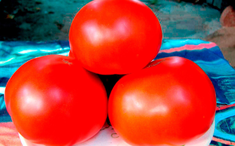 Среднеранний, суперобильный, всепогодный гибрид. Растение среднерослое, до половины узлов не имеют пасынков, а значит, в уходе он не сложен. Кисть с 5-6 плодами по 200-500 гр. округло-овальной формы, красного цвета с розоватым отливом. На крепких и прочных стеблях кисти стоят стеной, мимо которой просто невозможно пройти, не полакомившись этими чудесными плодами. Для гарантированного урожая необходимо надёжно закрепить куст подпорками, иначе он просто рухнет под тяжестью томатов. Отличительные особенности: восхитительный вкус – мякоть как сладковатая томатная паста с неповторимым ароматом летней свежести, устойчив к пониженной освещенности и температурным стрессам. Устойчив к ВТМ, фузариозу, кладоспориозу, галловым нематодам. Урожайность до 30 кг томатов с одного кв.м.