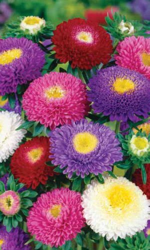 ОднолетнееРастение высотой 40-55 см. Соцветия плоскоокруглые, диаметром 4-5 см, формируется до 30 соцветий. Для выращивания подходят хорошо освещенные участки с плодородной суглинистой или супесчаной почвой. Астры обладают высокой холодостойкостью – хорошо переносят заморозки до – 3-4 °C.