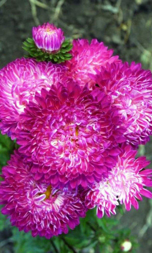 Густомахровая, обильноцветущая астра с очень крупными соцветиями. Кусты высокорослые, пирамидальные, состоят из множества длинных цветоносов. Многочисленные боковые побеги несут огромное количество одновременно открытых цветков, которые сплошь покрывают кусты...