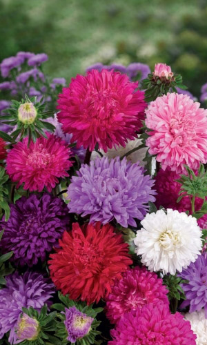 ОднолетнееГустомахровая, обильноцветущая астра с очень крупными соцветиями. Кусты высокорослые, пирамидальные, состоят из множества длинных цветоносов. Многочисленные боковые побеги несут огромное количество одновременно открытых цветков, которые сплошь покрывают кусты...