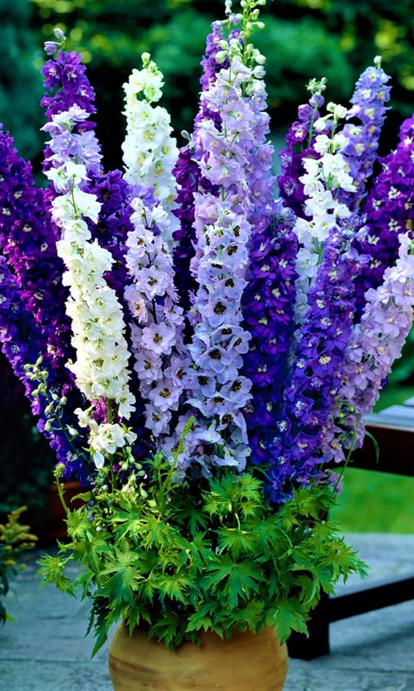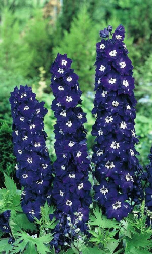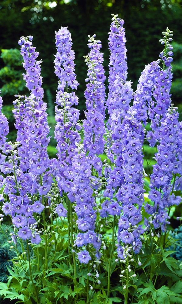 Идеальное растение для заднего фона цветника. Его крупные сине-голубые цветки с контрастным белым глазком собраны в плотные пирамидальные соцветия. Высота – больше 1,5 м. На лепестках часто возникает фиолетовый румянец, прожилки лепестков тёмно-синие. Дельфиниум...