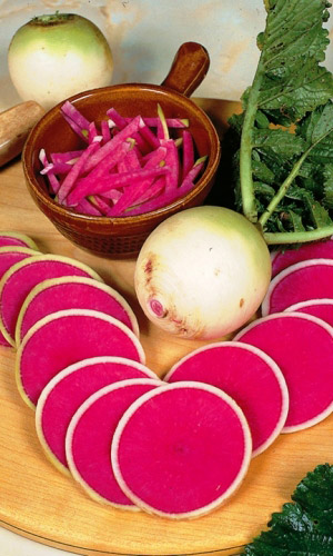 Истинное украшение любого стола! Корнеплоды выровненные, круглые, белого цвета, диаметром 10 см. Мякоть розовая, очень нежная, сочная, без горечи. Отлично хранится. Холодостойкий...