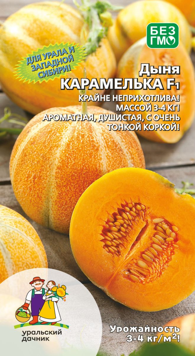 Поверхность плода сегментированная, без сетки, бело-зелёного цвета, кора тонкая. Мякоть ярко-оранжевая, тающая, с высоким и стабильным содержанием сахаров и каротина. В зонах рискованного земледелия выращивается рассадным способом.