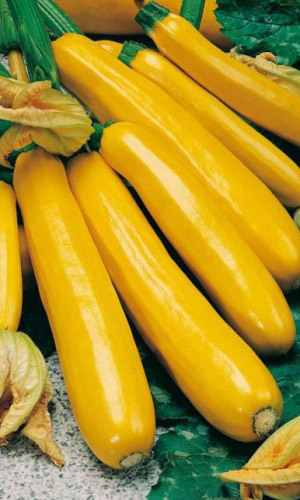 Невероятно урожайный, популярный сорт. Растение кустовое, с большим количеством женских цветков. Плоды удлиненно-цилиндрические, массой до 1,5 кг. Поверхность гладкая, слаборебристая, золотисто-жёлтой окраски. Мякоть кремово-жёлтая, толстая, плотная, сочная, отличных вкусовых качеств. Ценность сорта: обильное плодоношение, устойчивость к болезням, отличное хранение. Рекомендуется для детского, диетического питания, приготовления икры, консервирования и засолки...
