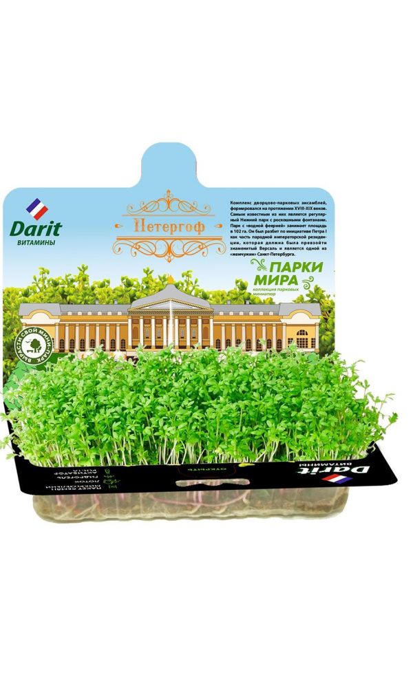 Микрозелень кресс-салата - молодые растения в фазе первой пары настоящих листьев, содержат большое количество витаминов группы B, а также витамины A, C, D, E, K, P P. Листочки имеют характерный аромат, а их вкус - пряный, пикантный, с нотками горечи.Вырастить микрозелень Darit проще...