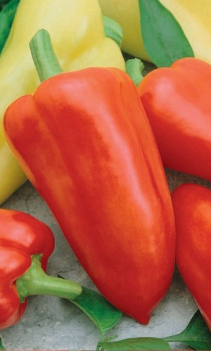 Раннеспелый, очень урожайный сорт для открытого грунта и плёночных теплиц. Растение полураскидистое, высотой 40-45 см. Плоды направлены вверх, узкоконусовидные, в технической спелости желтоватые, в биологической – тёмно-красные, массой 60-80 г, толщина стенки 6-7 мм, сочные,...
