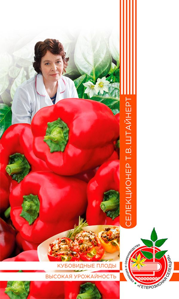 Среднеспелый сорт для открытого грунта и плёночных укрытий. Растение высотой 50 см. Плоды кубовидные, красные, массой 200-250 г, толщина стенки 6-8 мм, отличного вкуса. Ценность сорта: комплексная устойчивость к болезням, отличная завязываемость плодов, высокие...