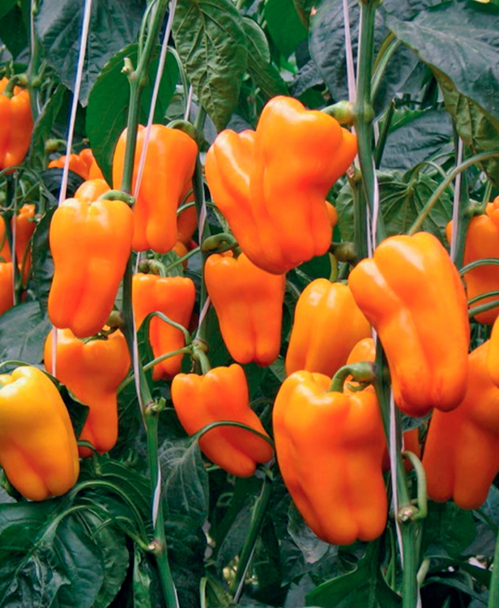 Очень урожайный, раннеспелый гибрид. Куст полудетерминантного типа с ограниченным ветвлением, что существенно уменьшает затраты на пасынкование, прямостоячий, редкий – это существенно облегчит Вам уход за ними. Высота куста 80-100 см. Плод – жёлтый длинный конус массой более 200 г, размером 15-17×6-8 см; толщина стенки 1 см. Плоды одни из самых крупных среди цветных перцев, толстостенные, очень привлекательны по форме и окраске.