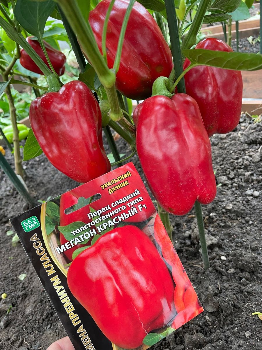 Гибрид раннего срока созревания. Для выращивания в теплицах, парниках, туннелях. Растение высокорослое (80-85 см), мощное. Плоды гибрида Мегатон F1 сразу выделяется на общем фоне, плоды его величественно висят по периметру куста крупными ровными тяжёлыми крупными кубами, гладкие, глянцевые. Плоды одни из самых крупных среди цветных перцев, вес их колеблется от 260 до 300 г (!), толщина стенки от 0,8 до 1 см(!), мякоть брызжуще-сочная, необыкновенно вкусная и ароматная. В собранном Вами урожае плоды перца будут "равны как на подбор" – один к одному крупные, толстостенные, вкусные и полезные.