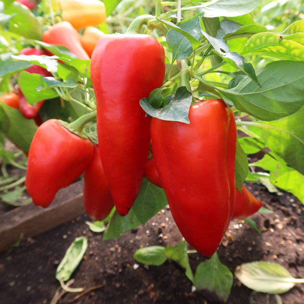 Раннеспелый, очень урожайный сорт для открытого грунта и плёночных теплиц. Растение полураскидистое, высотой 40-45 см. Плоды направлены вверх, узкоконусовидные, в технической спелости желтоватые, в биологической – тёмно-красные, массой 60-80 г, толщина стенки 6-7 мм, сочные, ароматные, очень сладкие. Рекомендуется для использования в свежем виде, в домашней кулинарии и для консервирования.