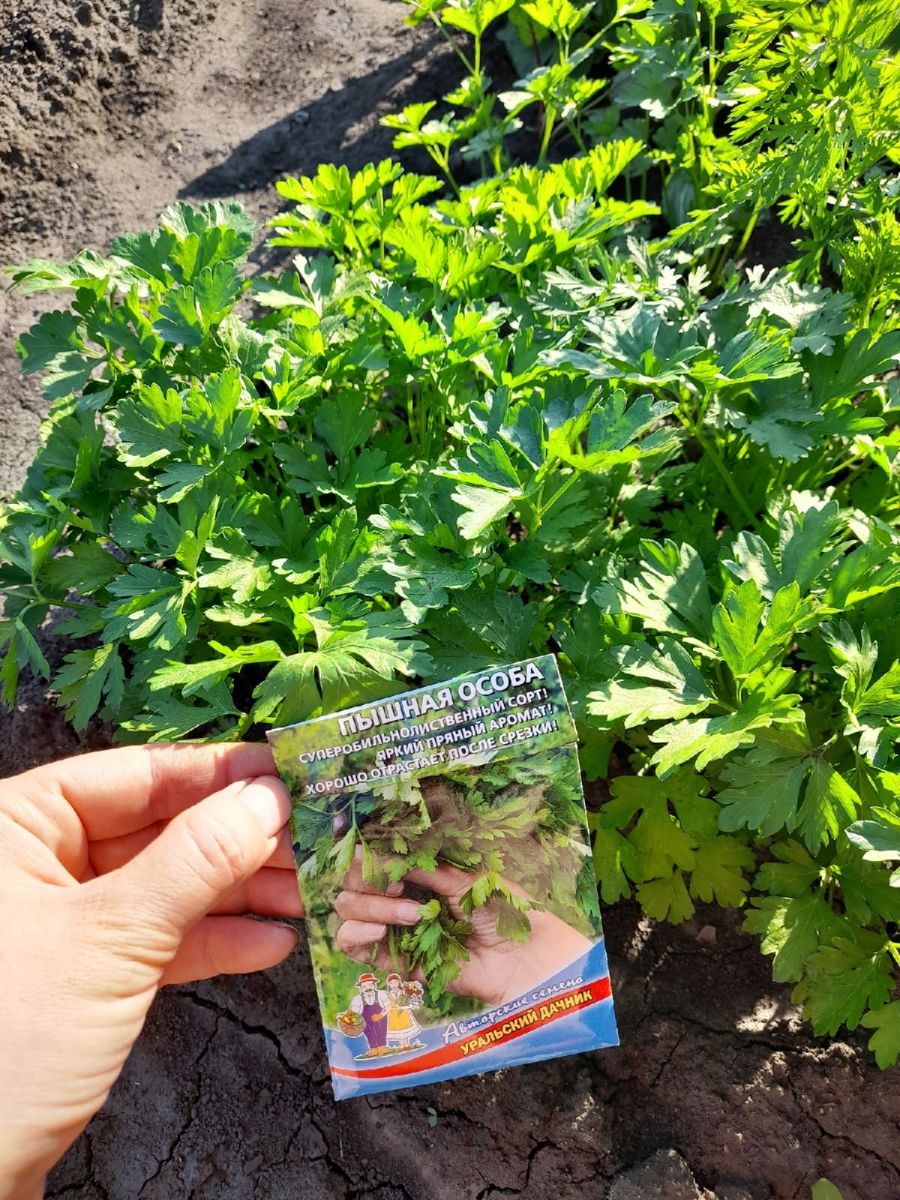 Посев семян проводят в несколько сроков: ранней весной (конец апреля – начало мая), под зиму (октябрь-ноябрь), в середине лета (в конце июня). Подзимний посев проводят сухими семенами. Весной петрушку сеют в увлажненные бороздки на расстоянии 3-4 см в ряду и 20-30 см между рядами. Глубина заделки семян – не более 0,5 см. Посевы сверху мульчируют торфом. Для ускорения прорастания семян посевы накрывают пленкой, которую убирают при появлении всходов. Уход за петрушкой включает борьбу с сорняками, два прореживания посевов, подкормки после прореживания, которые совмещают с очередным поливом.