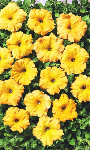 Новая модная группа ампельных петуний! Молодые растения прямостоячие, вырастая, побеги свешиваются и образуют лавину из цветов. Эффектные крупные воронковидные цветы с насыщенно-жёлтым жилкованным центром. Цветёт обильно с июня по октябрь. Великолепно подходит для...