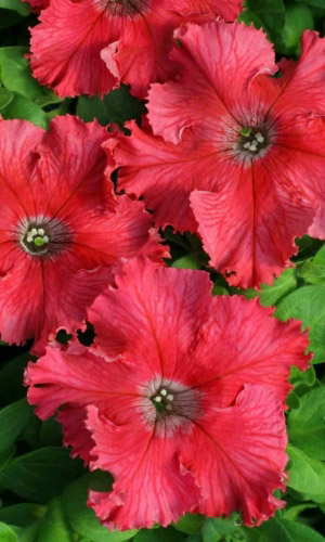 Ампельная обильноцветущая петуния. Стебли свисающие, гибкие, длиной 35-40 см, равномерно усыпаны огромным количеством кораллово-розовых цветков диаметром 6-8 см. Цветение раннее и продолжительное, с мая до окончания сезона. Растения прочные, хорошо переносят воздействие...