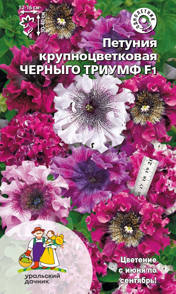 Высота растения 40 см. Диаметр цветка 12 см.Сюрприз предстоящего сезона – смесь петуний "Глориоза", которая отличается своим изяществом, насыщенностью оттенков цветков и сильной гофрировкой краев лепестков. "Глориоза"- рекордсменом среди махровых по обилию и продолжительности цветения. Исключительно компактные и однородные кустики с пышным облаком цветков, которые не боятся ни дождя, ни ветра, ни жары, стойко выдержат любую непогоду...