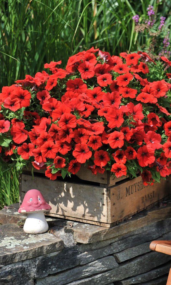 Новая модная группа ампельных петуний! Молодые растения прямостоячие, вырастая, побеги свешиваются и образуют лавину из цветов. Эффектные пурпурно-красные воронковидные цветы с контрастной белой звездой в центре. Цветёт обильно с июня по октябрь. Великолепно подходит...
