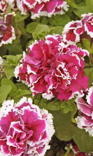 Серия «ЕКС» – характеризуется компактным кустом и махровыми ярко окрашенными гофрированными цветками (диаметр до 10 см), напоминающими махровую гвоздику. Растения отличаются холодо- и ветроустойчивостью. Петуния – относительно неприхотливое и очень пластичное растение. Серия «ЕКС» идеальна для выращивания в корзинах, контейнерах, на клумбах, рабатках и бордюрах...