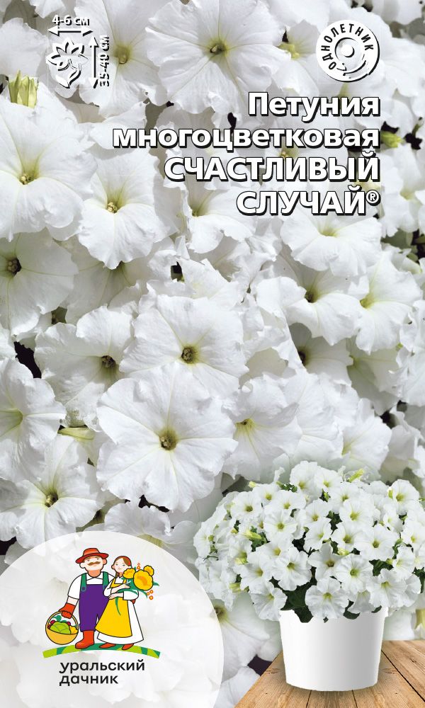 Ампельная обильноцветущая петуния. Стебли свисающие, гибкие, длиной 35-40 см, равномерно усыпаны огромным количеством белоснежных цветков Ø6-8 см. Цветение раннее и продолжительное, с мая до окончания сезона. Растения прочные, хорошо переносят воздействие дождя и ветра, не...