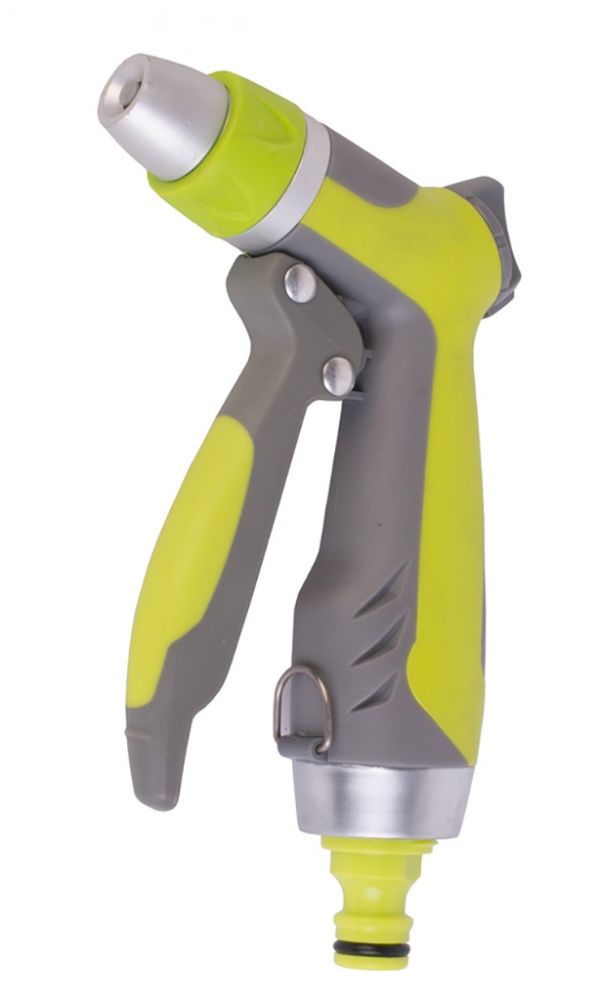 Применяется для полива различных типов растений. Плавная регулировка от жесткой струи до распыления. Пистолет имеет удобную внутреннюю рукоятку.