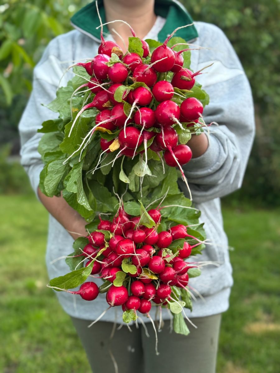 Редис высевают в несколько сроков: с конца апреля (грядку укрывают плёнкой до появления всходов), в дальнейшем, при необходимости, посевы проводят с интервалом 2-3 недели. Осенние посадки дают более крупные корнеплоды. Семена высевают в рядки с междурядьями 10-12 см, расстояние между семенами 2-3 см, на глубину 1-1,5 см. В разгар лета, при самом длинном световом дне, посадки необходимо притенять. Полив регулярный – через 2-3 дня, в сухую погоду – ежедневно. Необходимо своевременно производить уборку.