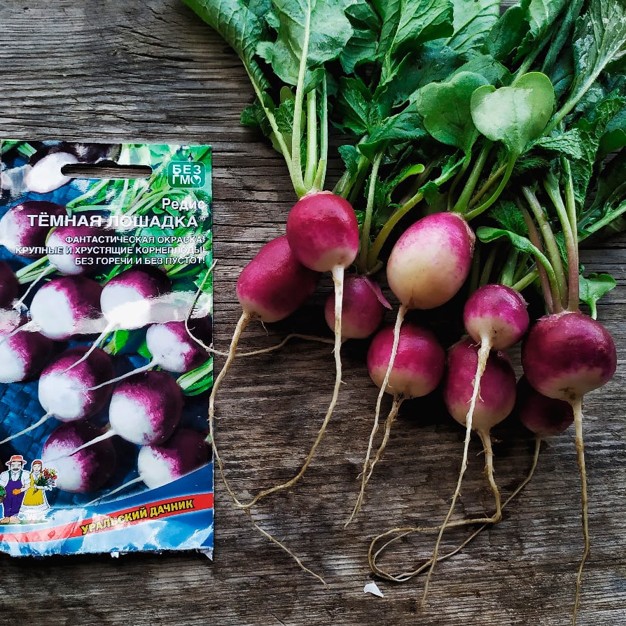 Ранний сорт, от всходов до уборки урожая 22-24 дня. Корнеплоды оригинальной необычной окраски – ярко-фиолетовые с белым кончиком, очень крупные. Мякоть белая, нежная, сочная, слабо острая. Устойчив к цветушности, для весеннего и осеннего посева.