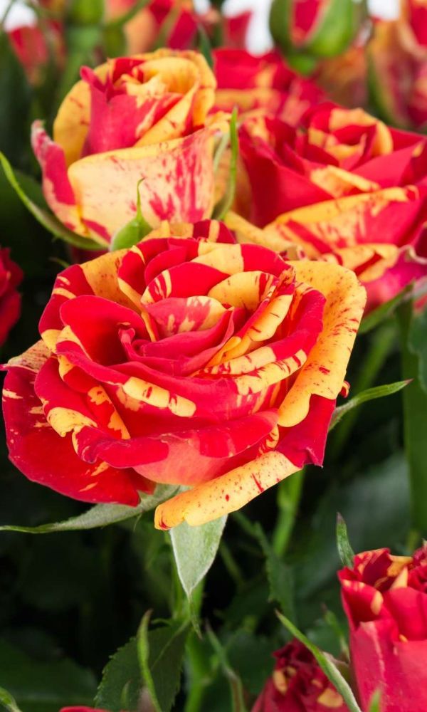 Это уникальный сорт, который привлекает внимание своим необычным внешним видом. Бутоны этой розы имеют оригинальную окраску: на тёмно-красных лепестках выделяются яркие жёлтые полосы. Некоторые цветы украшены небольшими пятнами.На одном кусте невозможно найти два...