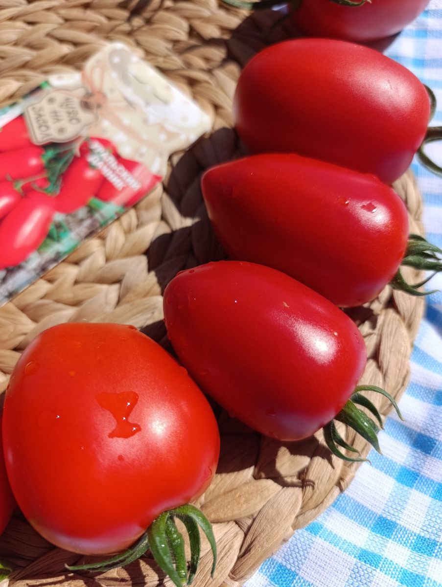 Ультраскороспелый сорт для открытого грунта. Растение высотой 40-45 см, не требует пасынкования и подвязки. Плоды красные, мясистые, удлинённо-овальные, с носиком, гладкие, массой 50-60 г. Сорт особенно рекомендуется для начинающих огородников, так как растения не требуют сложного ухода.