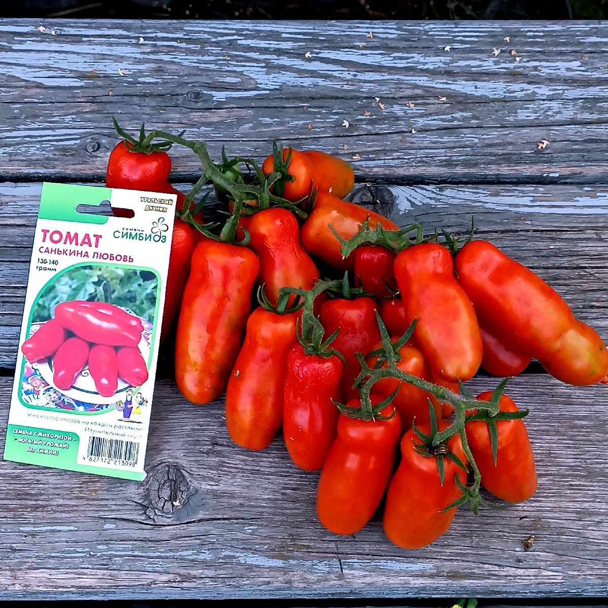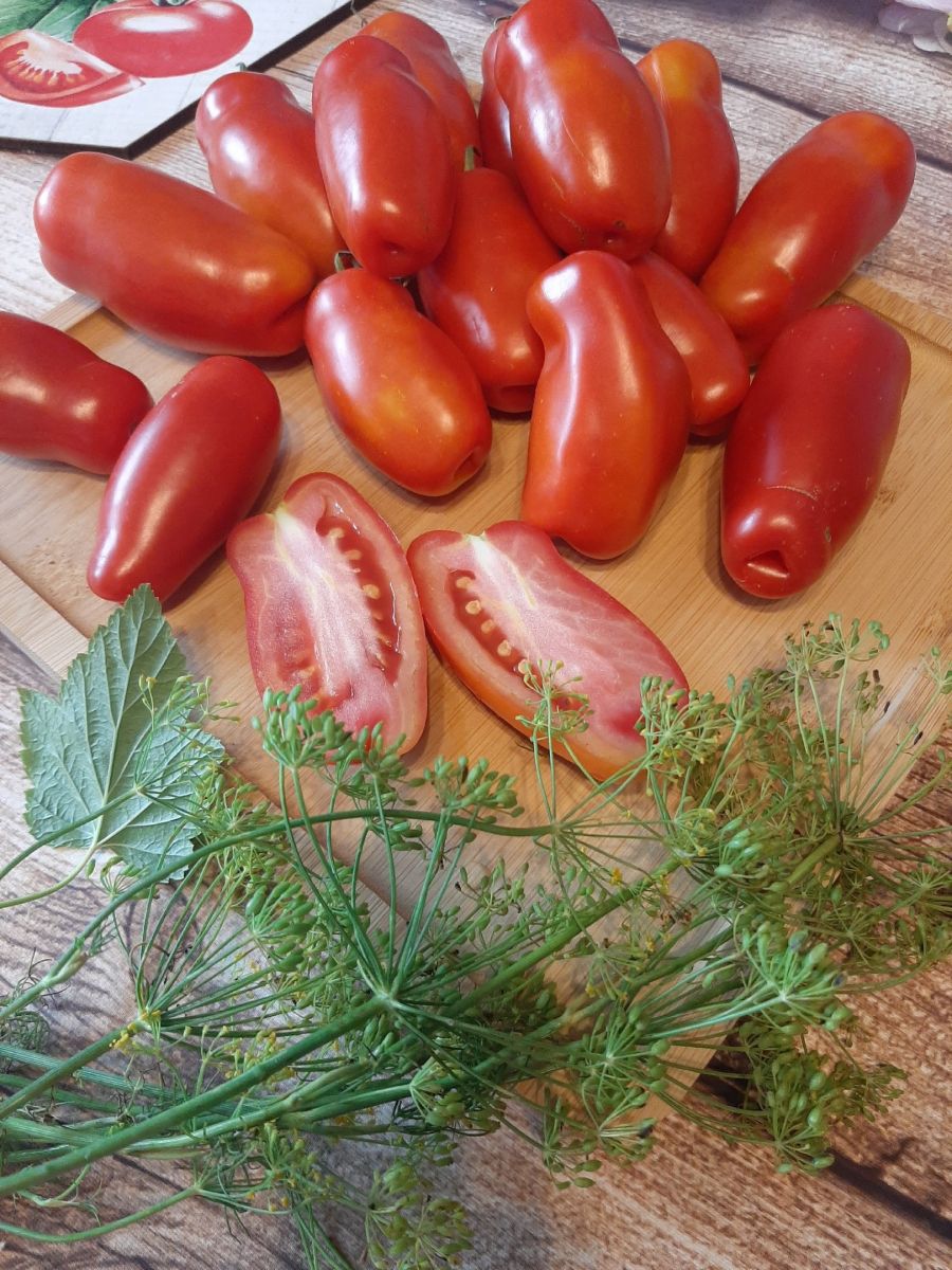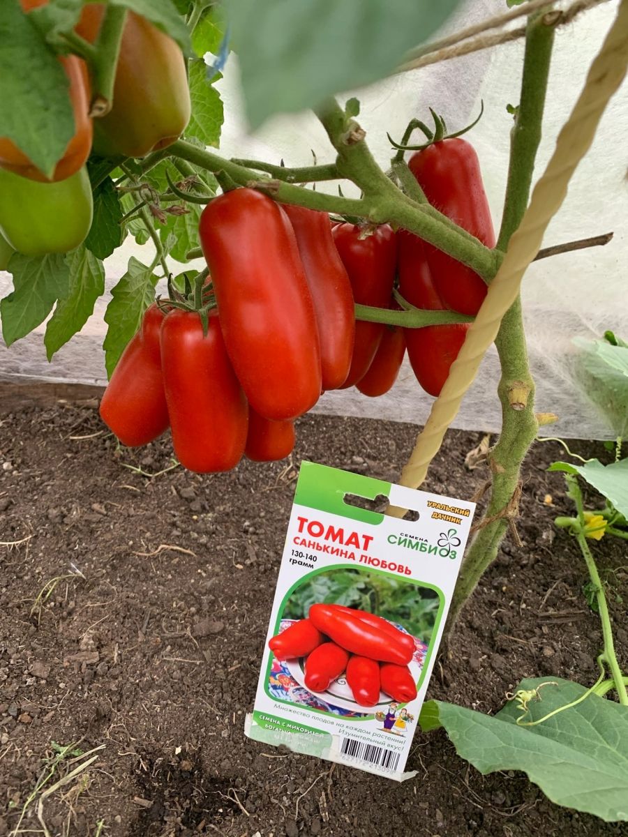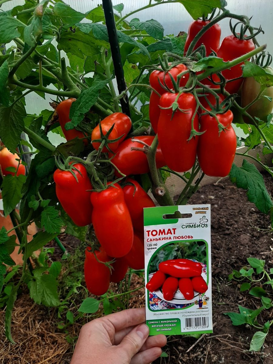 Закрытый грунтУникальный по форме плода томат. Невероятно многоплодный сорт – растение просто увешано плодами. Очень вкусный, мясистый, практически не содержит семян. Очень здоровые растения, не поражаются болезнями. Среднеспелый сорт (100-105 дней от всходов до плодоношения). Штамбовый, высота растения 40-45 см. Куст очень компактный, плотный. Кисть простая, состоящая из 5-6 необычных плодов. Форма плода сильно-вытянуто-цилиндрическая – длина плода 15-16 см, диаметр 3-4 см., красного цвета, массой 130-140 г. Плоды в кисти созревают дружно.