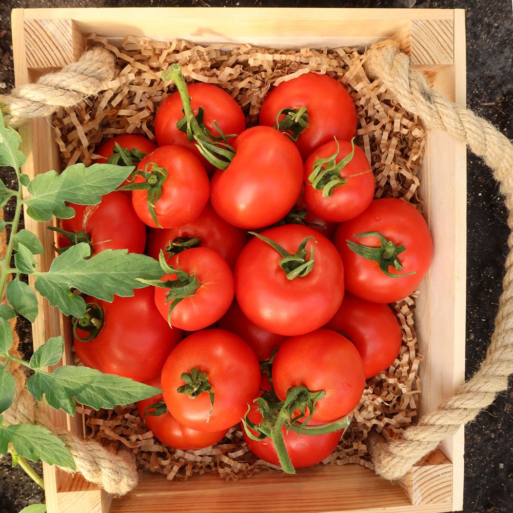 Очень ранний гибрид Челябинской селекции. В плодоношение врывается как поезд экспресс, всегда очень рано, обильно и точно в срок, период от всходов до созревания всего 98-105 дней. Растение величественное, мощное, высотой 210-250 см, формировать его необходимо не менее чем в 2 стебля. Кисти с 5-6 плодами, дерзкого красного цвета, округлые, все равны как на подбор, очень плотные с прекрасными вкусовыми качествами.