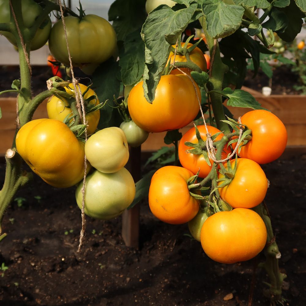 Индетерминантный сорт для плёночных теплиц. Плоды золотисто-жёлтого цвета, плоско-округлой формы, массой до 300 г, изумительно сладкие, ароматные. Салатный. Куст весь увешан плодами!