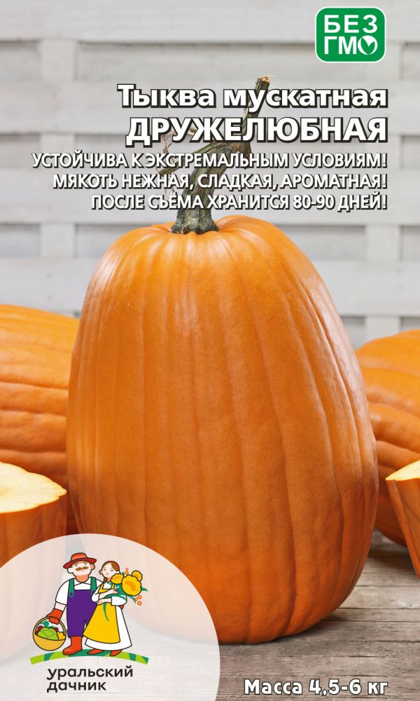 В смесь входят сорта Крошка, Россиянка и Конфетка, это ранние, среднеспелые и среднепоздние сорта, от всходов до уборки урожая 90-128 дней. Плоды плоскоокруглые и чалмовидные, гладкие и сегментированные, светло-серого и ярко-оранжевого цветов, массой 1,5-3,0 кг. Мякоть...