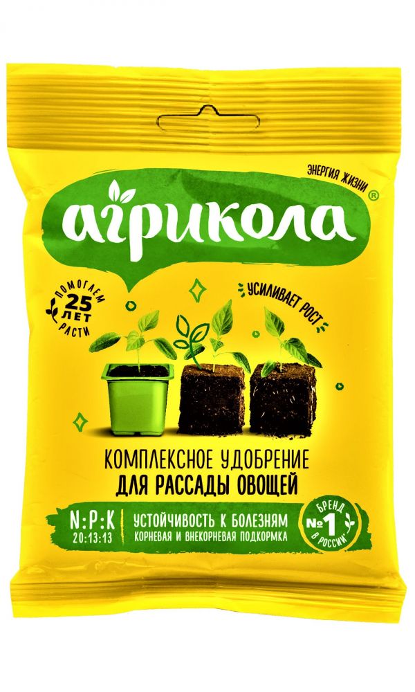 Высокоэффективное водорастворимое комплексное удобрение для подкормки рассады овощных и цветочных культур. Агрикола-6 усиливает рост рассады и повышает её устойчивость к заболеваниям и неблагоприятным погодным условиям. Увеличивает урожай!NPK 20-13-13 + MgO + микроэлементы...