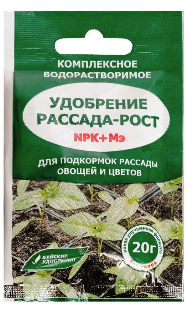 Комплексное водорастворимое бесхлорное минеральное удобрение «Рассада-Рост» содержит макро- и микроэлементы для подкормок рассады овощных и цветочных культур.Содержание пакета растворить в 10 л воды. Полученный раствор используют для корневых и внекорневых подкормок с интервалом 7-10 дней из расчета обычной поливочной нормы на 1 м2.Возможно проведение подкормок минеральным удобрением «Рассада-Рост» овощных и декоративных культур в период всей вегетации. ...