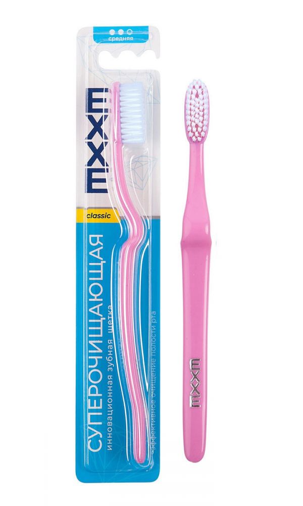 Зубная щетка Exxe Classic Суперочищающая – это удобная эргономичная ручка и полированные закруглённые щетинки. Удобный изгиб ручки позволяет легко и без дополнительного давления на десны очистить дальние поверхности. Полированные щетинки имеют идеальную скругленную форму, что с одной стороны, позволяет добиться более высокого очищающего эффекта, а с другой – деликатно и бережно воздействуют на зубную эмаль, не травмируя поверхность зубов...