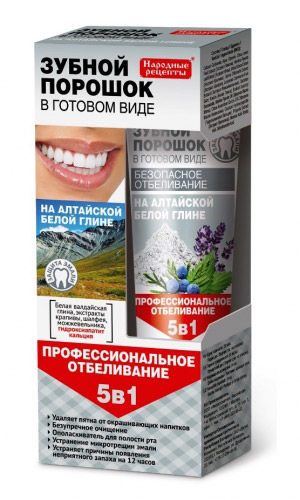 Зубной порошок отбеливающий для курящих – гигиеническое средство, обеспечивающее быстрое и эффективное отбеливание зубов за счёт абразивного удаления табачного налета. Специализированный зубной порошок не только эффективно снимает с зубов налёт, но и освежает полость рта, защищает зубы от кариеса, предотвращает появление зубного камня...